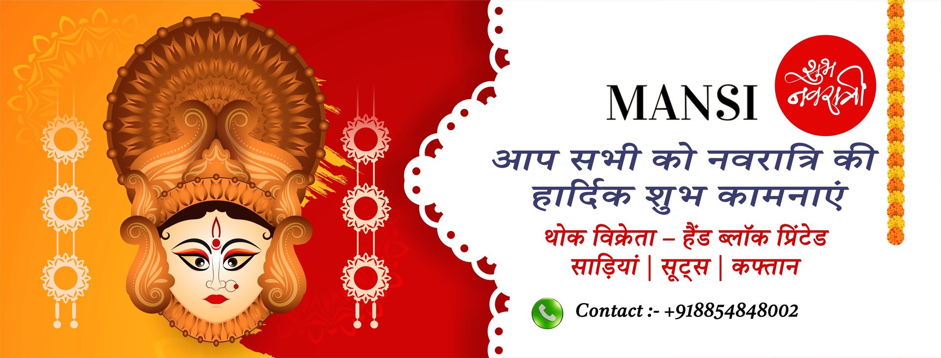 Mansi Hand Block prints situated in Bagru, Jaipur (INDIA). We are continuously promoting Indian hand block printing on fabric for make a traditional dress such as Sarees, Suits, Jumpsuit, Kaftan and Shirts. In this printing process the fabric comes from 6 Step of production like washing, coloring, mud drying process and much more. We are manufacturer and wholesaler of this productions since 2007. Thank You for being us. We close out 3000+ worldwide deliveries of Traditional Sarees and Suits